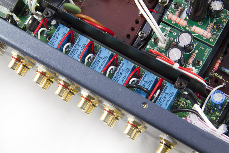 Input selector switches mounted on the front panel requires long wires to run from the switch in the front to the rear RCA jacks, and they invite stray noise like RF and EMI. Additionally, audio quality degrades as the switch gets dirty and worn and they present crosstalk between the inputs. This crosstalk causes noise which obscures micro details in the music.